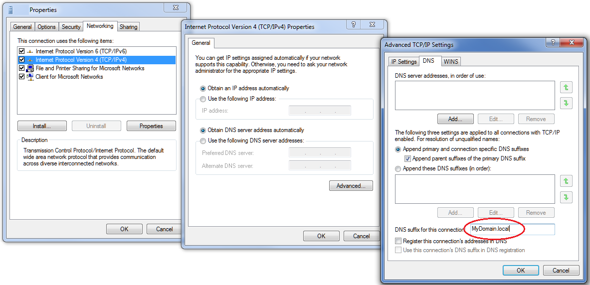 The simple solution is to simply make sure DNS is configured for the remote domain by adding the DNS suffix to the VPN/PPP network adapter. This allows you to open the documents located on the remote domain without the warning error, and without configuring Trusted Locations. To do so, view properties of the VPN virtual network adapter and under the DNS tab of the advanced TCP/IPv4 properties, add your internal remote domain, in the “DNS suffix for this connection” box, such as MyDomain.local.