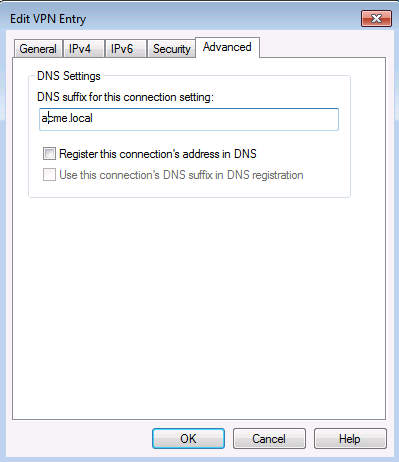 VPN name resolution is a common problem for many IT folk.  I have addressed in in previous blogs by manually configuring the VPN client to point to the corporate server for DNS, and adding the corporate domain suffix.  This is not practical as it has to be done on every computer on which the VPN client was configured.