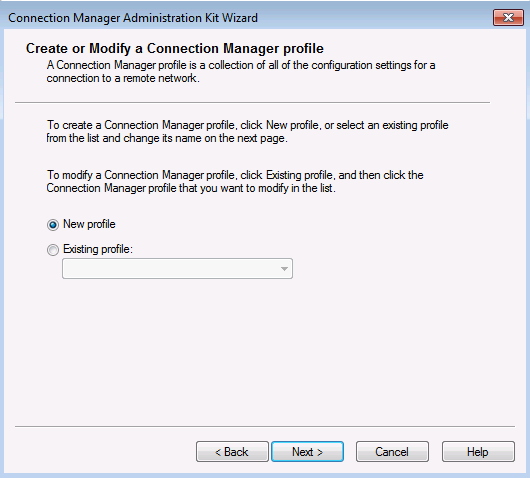 Small Business Server 2003 had a very nice little wizard that would create a deployable VPN client called “Connection Manager” which contained server connection information and allowed for proper name resolution over the VPN.  Though the missing feature from subsequent SBS versions inspired this article, it can be used to create a deployable VPN client for any Windows Server.  The SBS wizard basically ran a mini version of a standard Windows tool called CMAK.