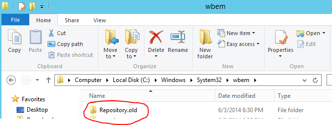 - Rename the WMI information file folder to something such as .old C:\Windows\System32\wbem\Repository.old