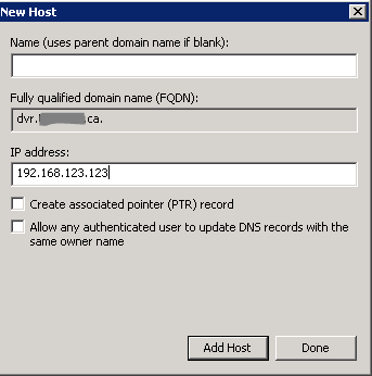 For simplicity there are many reasons you may want a single URL or FQDN to access a resource internal or external to your corporate domain.  If the internal and external domain names are the same it can sometimes cause DNS issues resolving the public domain name from the corporate network.  I am often asked about this in reference to web sites; “why is our website accessible from anywhere but our buisiness network””?”   For example you want to access www.net-works.ca from a network that uses the internal domain net-works.local.  The internal DNS server manages DNS for net-works so it doesn’t pass on the request to the forwarder, but it also doesn’t have a DNS record for the www Host.  The simple solution is to create an internal zone for the host name you are trying to access. SBS 2008/2011 did this automatically for “remote” so that the same URL could be used internally and externally.  This technique can be used for access ing websites, dvr systems, or anything you like that uses a FQDN.