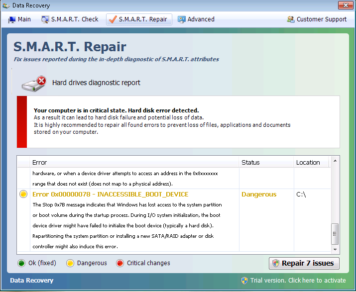 I am not a security expert, nor do I profess to be any sort of virus removal expert, but from time to time we all have to deal with their removal. A couple of my earlier articles relating to viruses seem to be popular so I thought I would share my latest conquest. Perhaps not the best method but it worked for me. This one reared its self as a popup warning with “S.M.A.R.T. Repair” and advised of hard drive issues. This is another variation of the “FakeAlert” virus that has been known over the last number of years as XP Security 2011, Security Shield, XP Antivirus 2010, MAC Security, and so on.