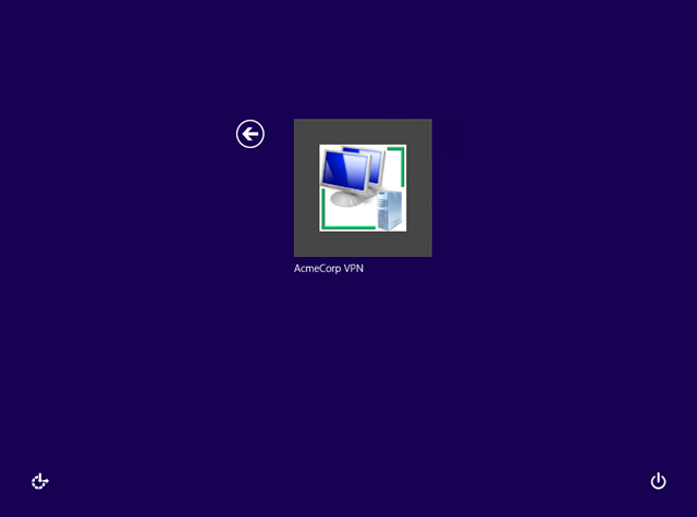 Click on the network icon and you will be presented with any VPN connection created on that computer.  Note these VPN connections must have been created using the “Allow other people to use this connection” option.  This discussion also applies only to domain joined computers.